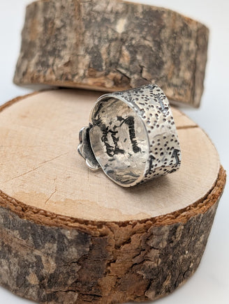 Size: 8 Wider band and may fit like a 7.5-7.75