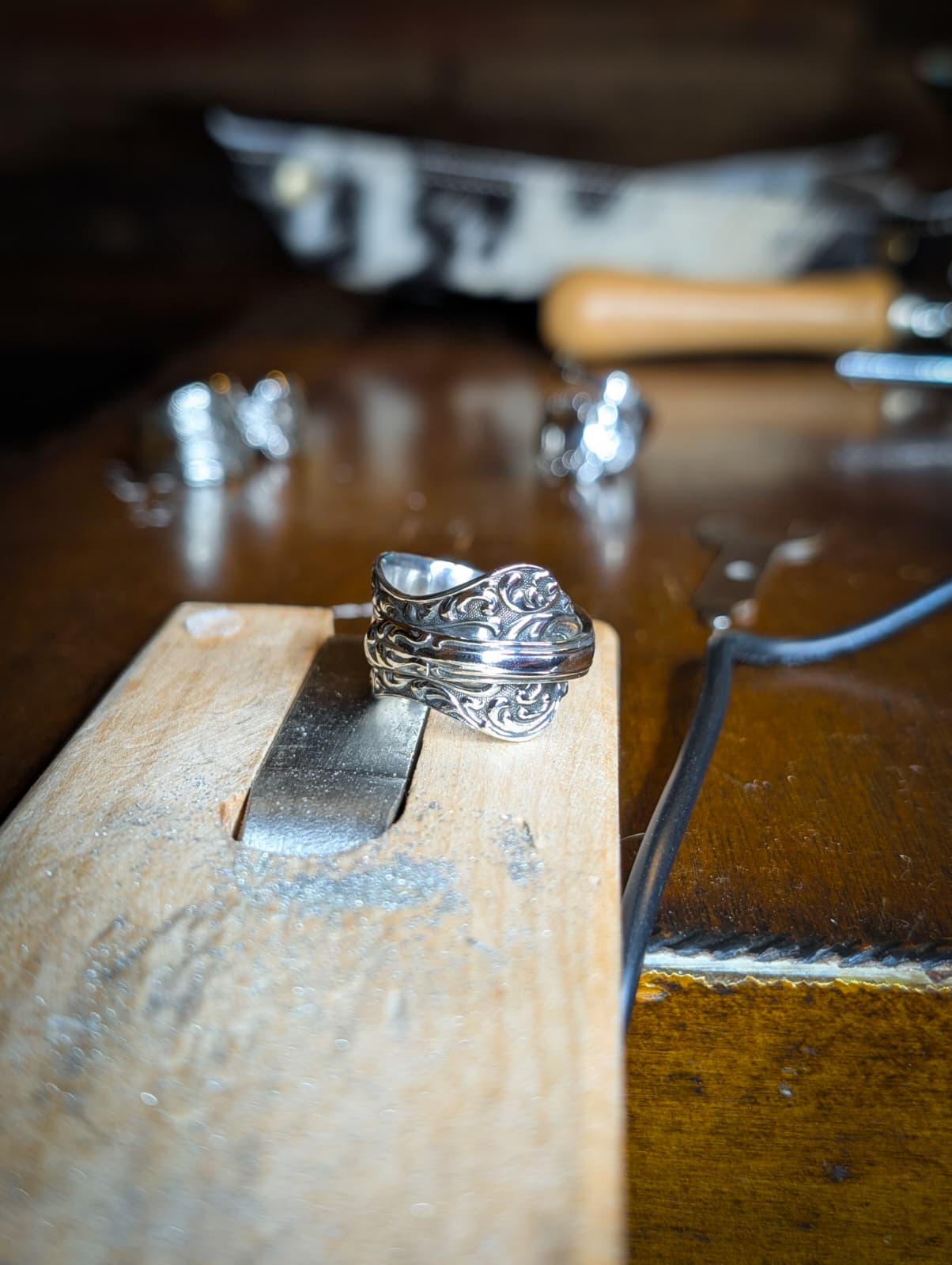 Antique silver plated spoons are typically made of a base metal, such as stainless steel, brass, or copper, that is coated with a layer of silver. The silver plating process involves depositing a thin layer of silver over the base metal, which gives the spoon its shiny appearance and allows for decorative designs.