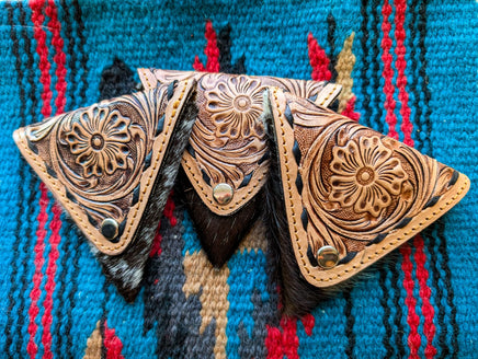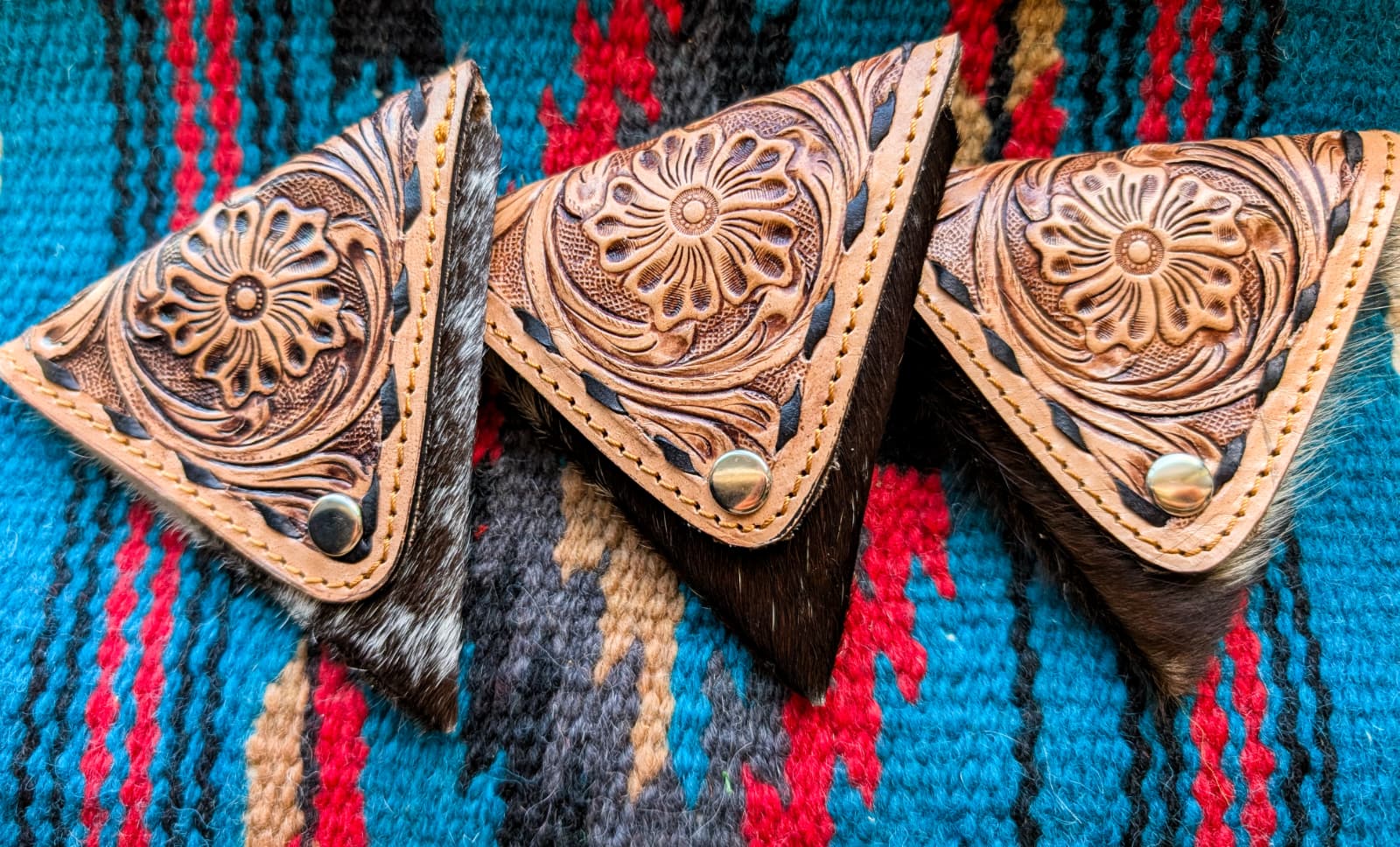 Blossom Tooled Leather & Cowhide Jewelry Pouch